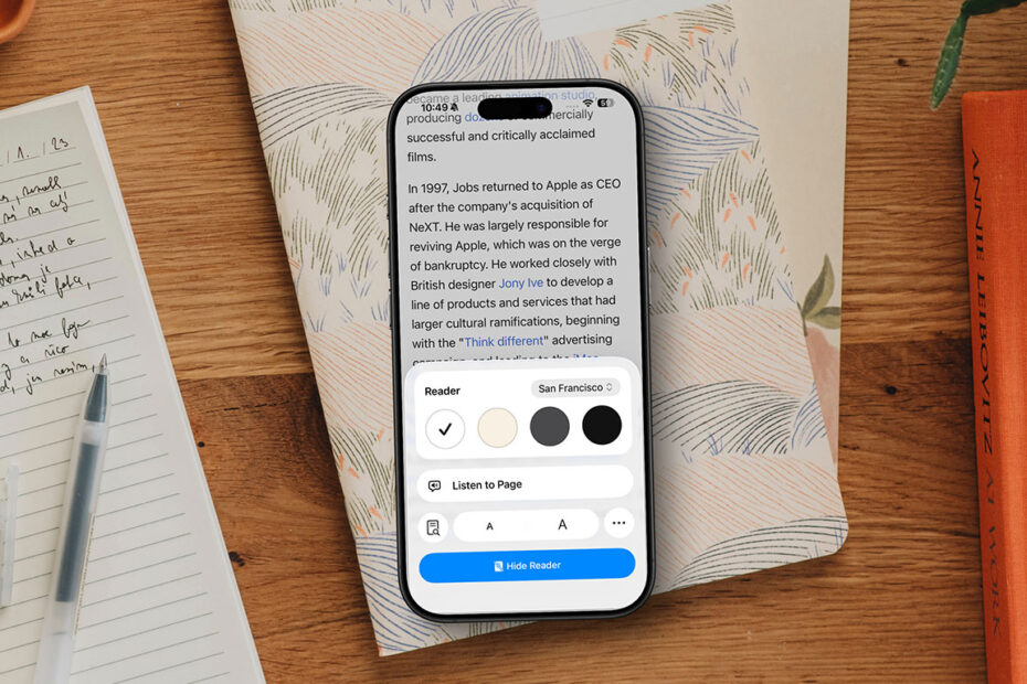 You can access Reader View while browsing the web in Safari. This strips out all the adverts, sidebars, and formatting, and lets you focus on just the plain text and essential images for an easy, distraction-free read.