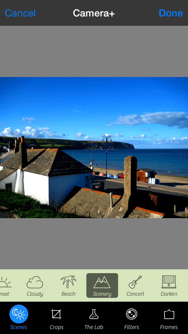 Having sold over ten million copies, Camera+ is one of the most popular iOS Camera alternatives. This will come as no surprise when you start using the app, which boasts loads of features, including touch-based zoom, a selection of shooting modes (including a stabiliser), and geotagging. It also includes extensive editing functionality, which can be accessed from within Photos. Single-tap scene modes can rework a photo for specific scenarios, such as sunset or night; crops can be made for specific ratios, including iOS wallpapers; a ‘lab’ gives you tools for sharpening/blurring, color control, vignettes, and tints; and a huge range of filters and frames provides almost limitless scope for further adjusting the look of your images.
