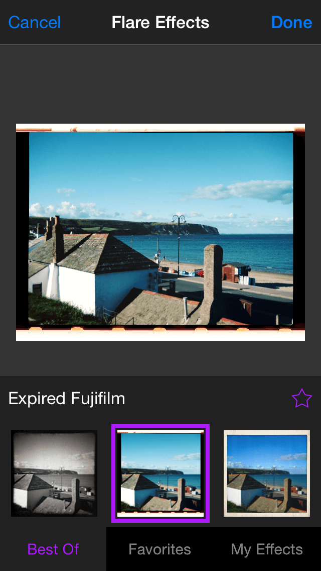 Flare Effects is a companion Photos extension (the standalone app is merely a few pages of instructions), providing the means to access your custom-built desktop effects on your iPhone. But in addition, you also get access to a small collection of curated effects, updated monthly, entirely for free.