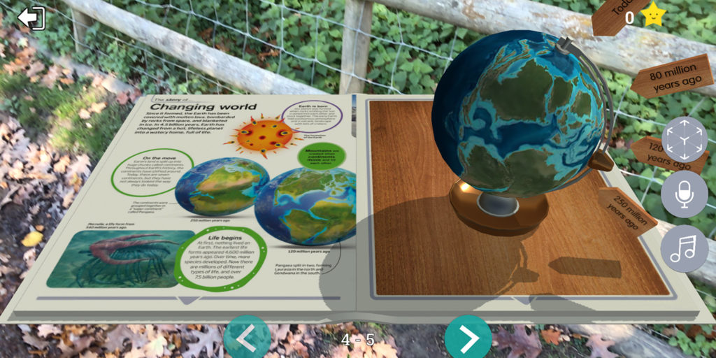 On opening the app, you select a virtual book and then point your device at a real-life surface with the device camera. It’s that simple. When the book opens characters will arise from the pages, layered over the open book which sits on top of whatever your camera can see.