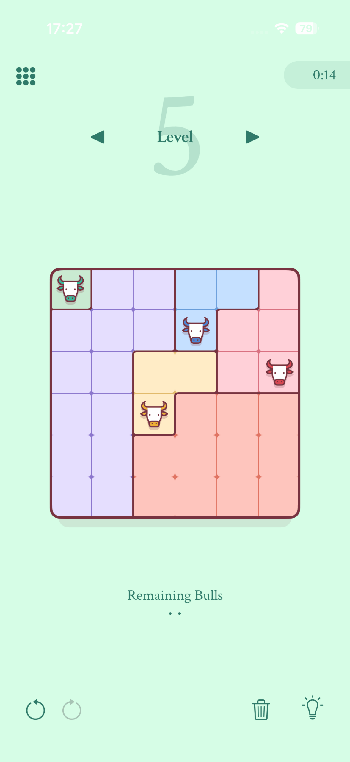 Imagine Sudoku meets Minesweeper, featuring angry bulls. That’s Bullpen. Across a whopping 5,000 levels (and daily puzzles), you’re tasked with placing bulls in colored, irregularly shaped pens, making sure none share a row, column or diagonal. If you’re into bite-sized puzzles, you’ll want to moo-ve this one on to your Home Screen.