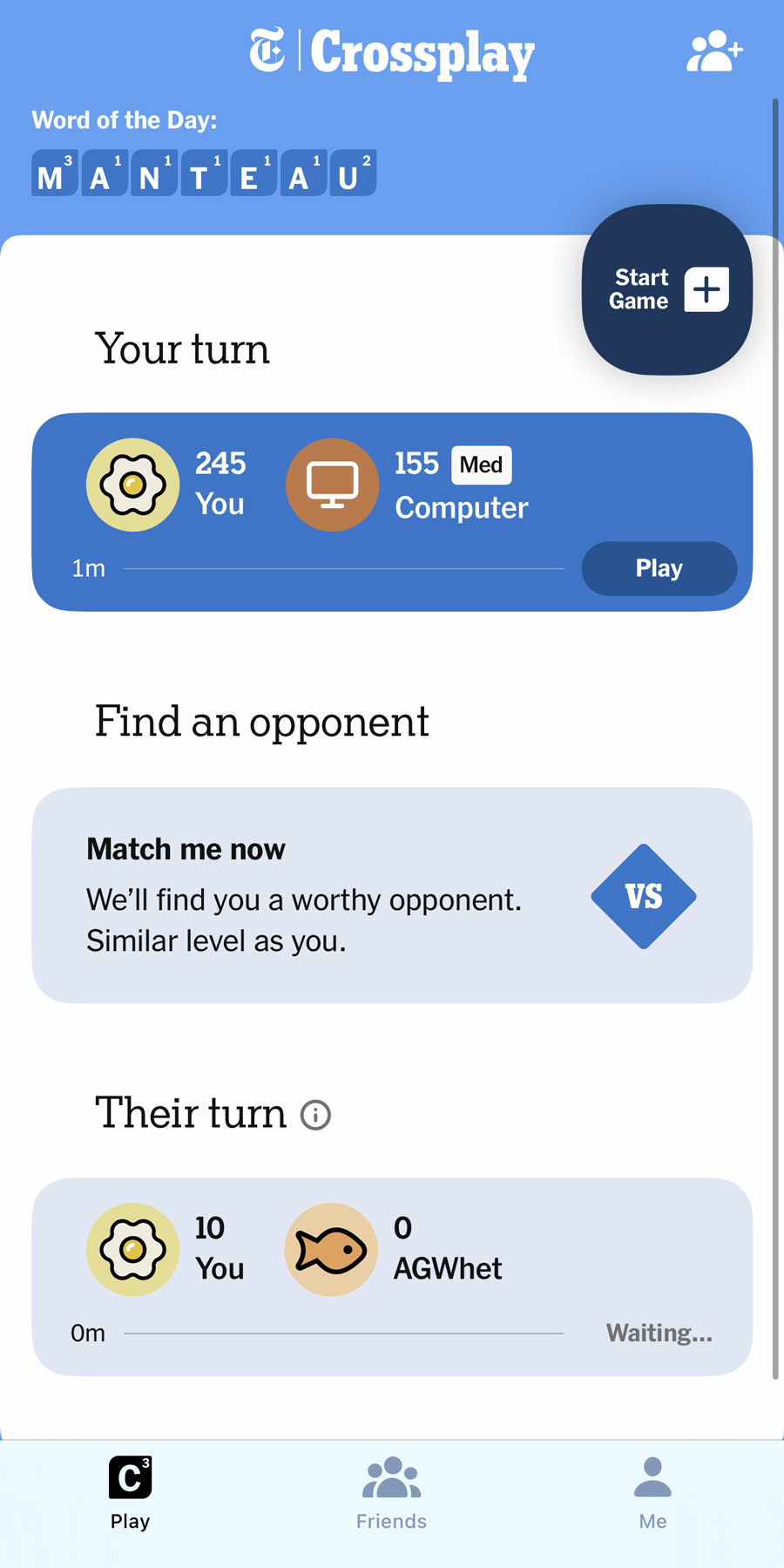 Now for the catch: the human factor. The app has been out for a little while now, but finding committed players is still a problem. It’s easy enough to find opponents, but harder to find ones who reliably take their turns – I have a graveyard of half-finished matches against people who simply vanished. Until NYT adds matchmaking that accounts for reliability as well as skill, the best experience is still playing friends you already know. Bots are a decent fallback if you want a quick game.