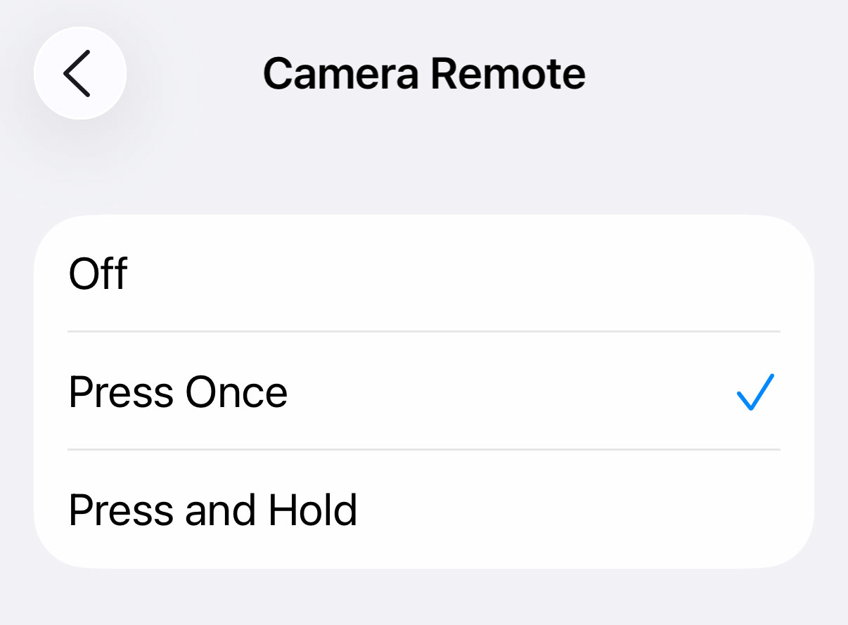 To set it up, make sure your AirPods are connected, then open Settings and tap your AirPods near the top of the screen. Choose Camera Remote, and decide whether you want a single press or a press-and-hold gesture to act as the shutter button. Each option temporarily disables some AirPods gestures while you’re in a camera app, so choose whichever you prefer.