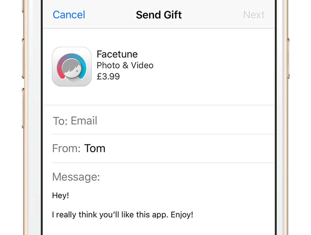 Note: in order to gift an app to someone they must be based in the same country.