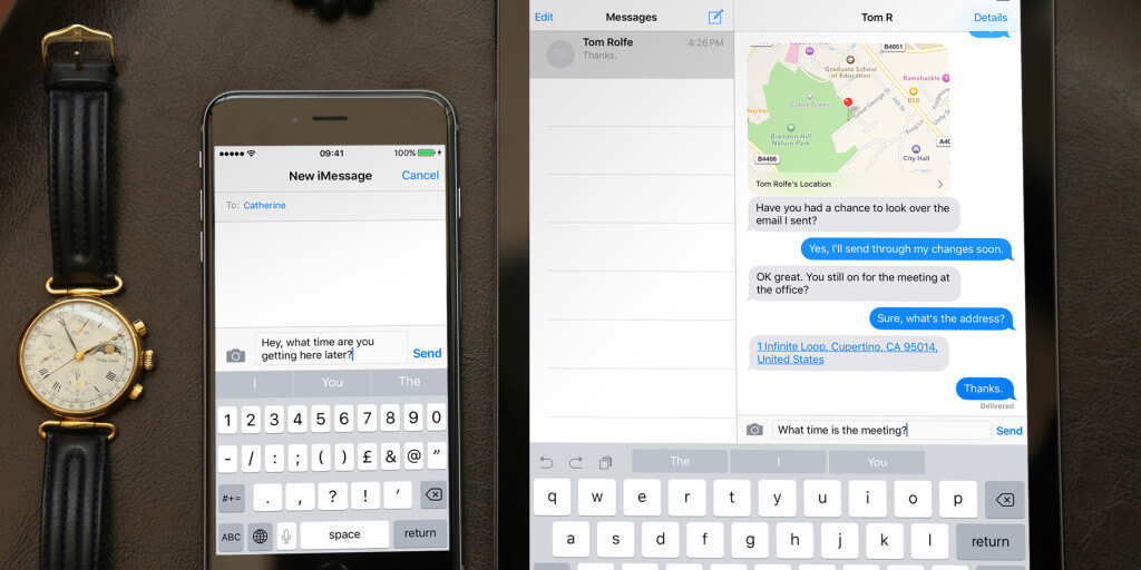 Once you and another user know each other’s number or email addresses, you can exchange texts via the Messages app. Your conversations will also appear on your other registered devices, so you can switch between your devices and