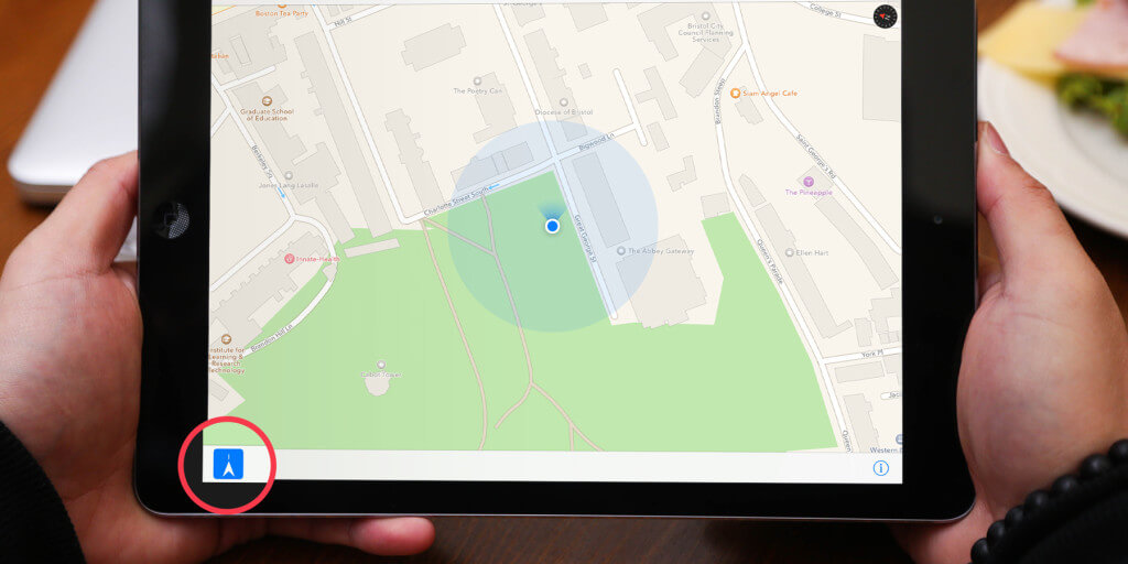 Pressing the icon again turns on compass mode, and orients the map according to the direction the iPad is facing. This is great if you’re lost in an unfamiliar place and are trying to follow directions.