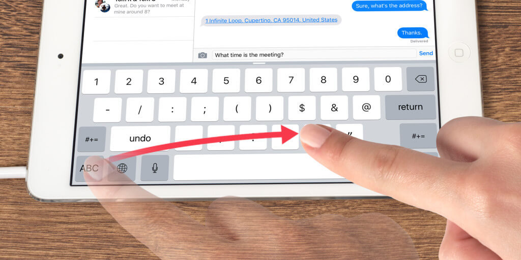 To quickly enter punctuation or numbers from the keyboard, tap and hold the secondary keyboard button and slide to any number or punctuation button.