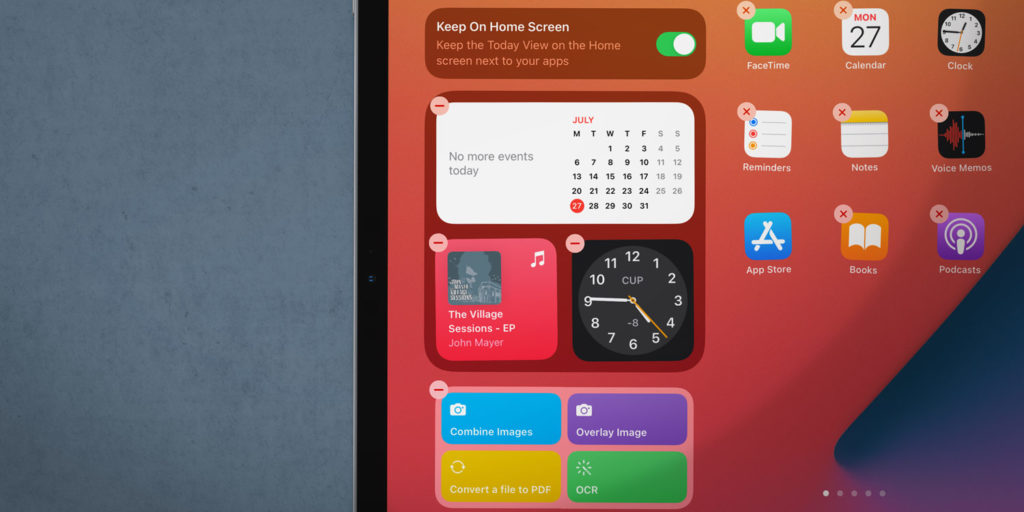 iPadOS 15 added the ability to dock widgets to your Home Screen. To do so, first enter Edit mode as described above. Press and hold on a widget to pick it up, then drag it to the right of the display until the Home Screen appears. Drop it wherever you like – your existing app icons will dutifully move out of the way.